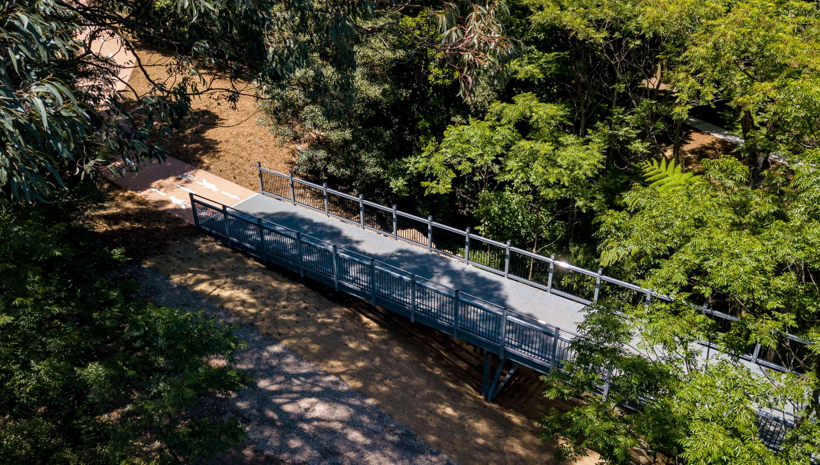 A key feature of the project was the use of Fibre Reinforced Polymer (FRP) materials for both pedestrian bridges, selected in place of traditional steel to enhance durability, reduce maintenance costs, and minimise environmental impact. The 6-metre bridge spans allowed for streamlined installation in constrained conditions, reducing the project’s environmental footprint while maintaining safety and efficiency.