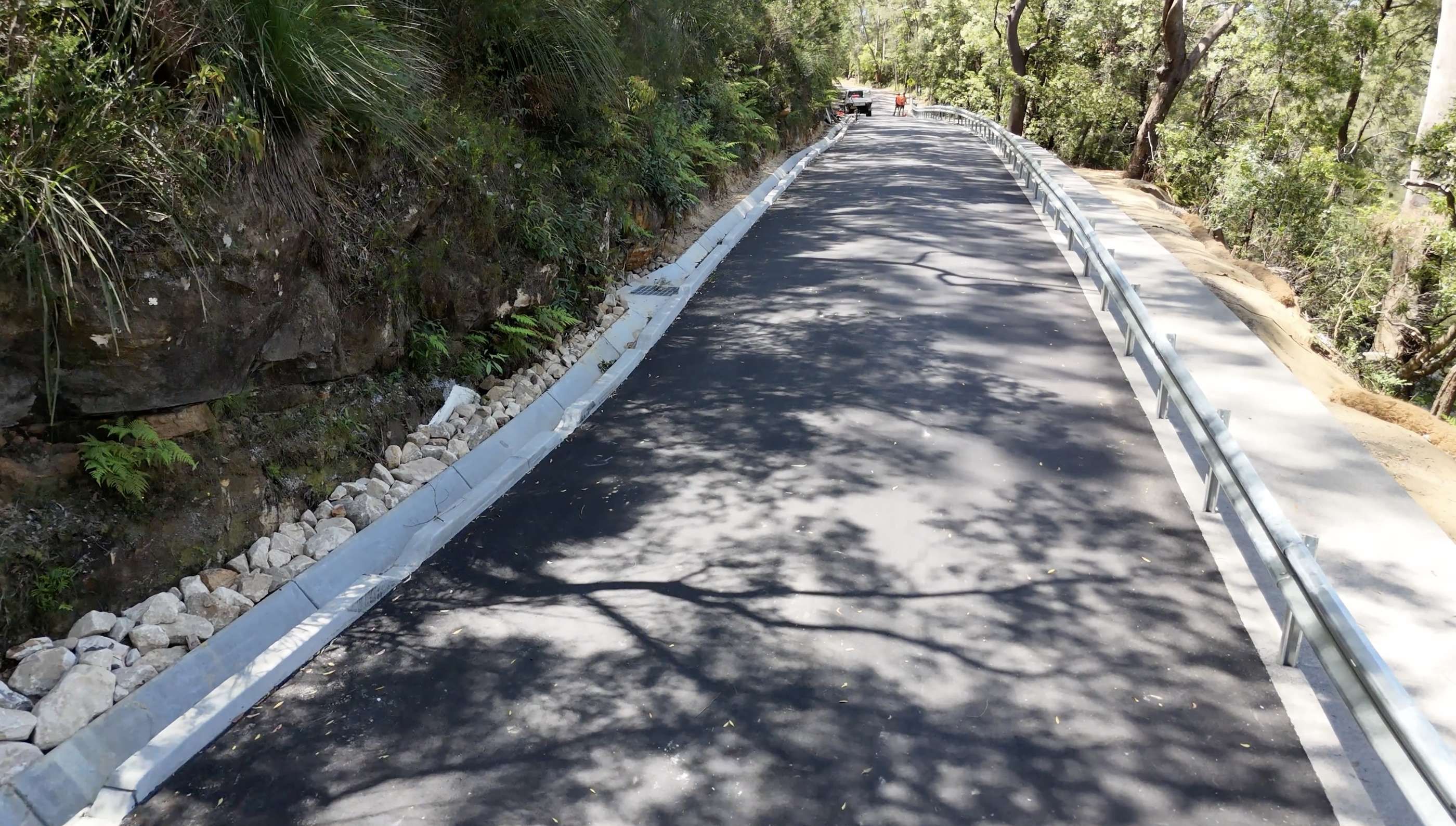 Drainage upgrades included subsoil drainage and energy-dissipating outlets to manage runoff and reduce erosion. Environmental controls such as floating silt curtains and sediment fencing were implemented, and disturbed areas were promptly revegetated with endemic species to enhance stability and minimise long-term environmental impacts.