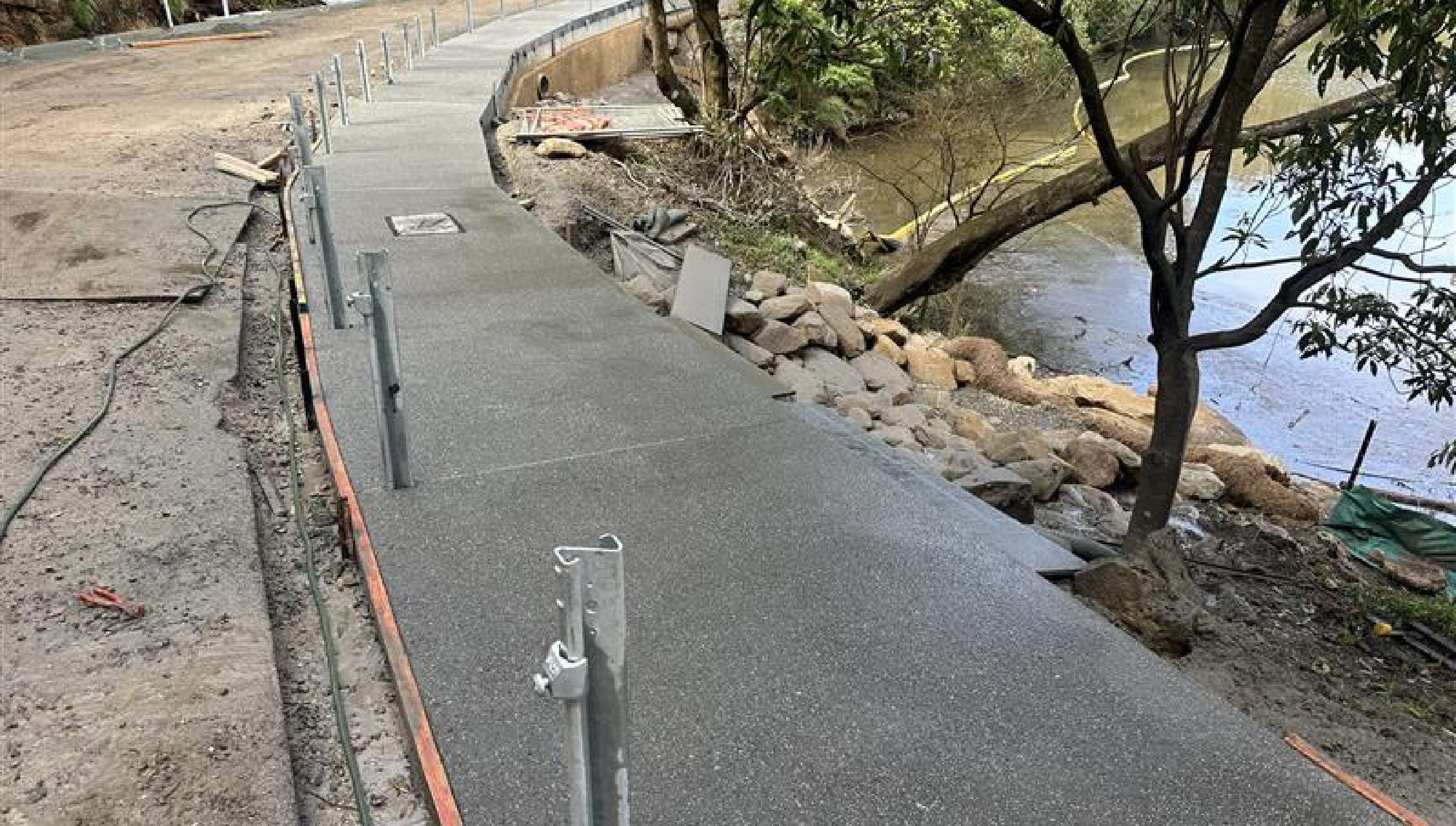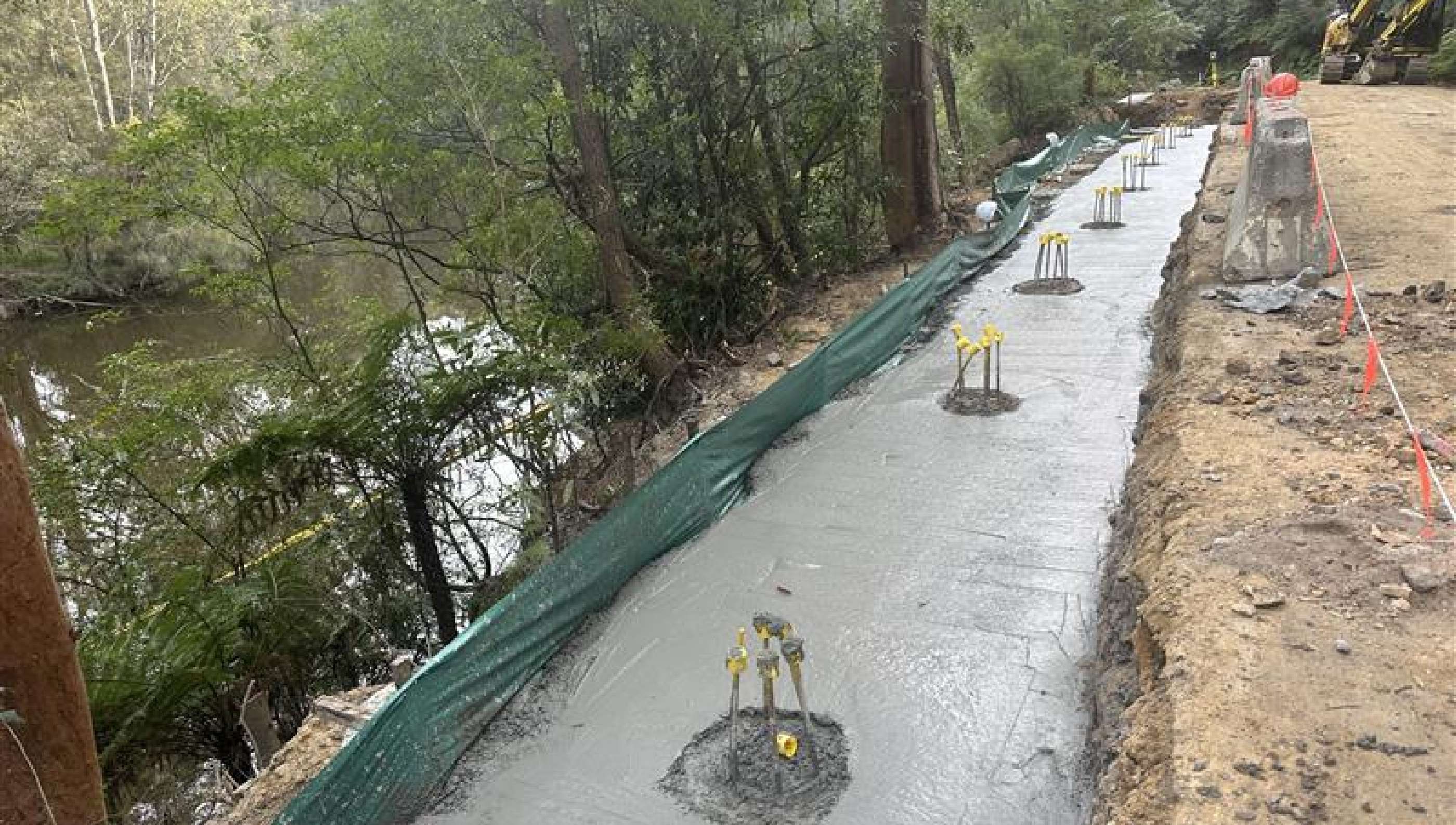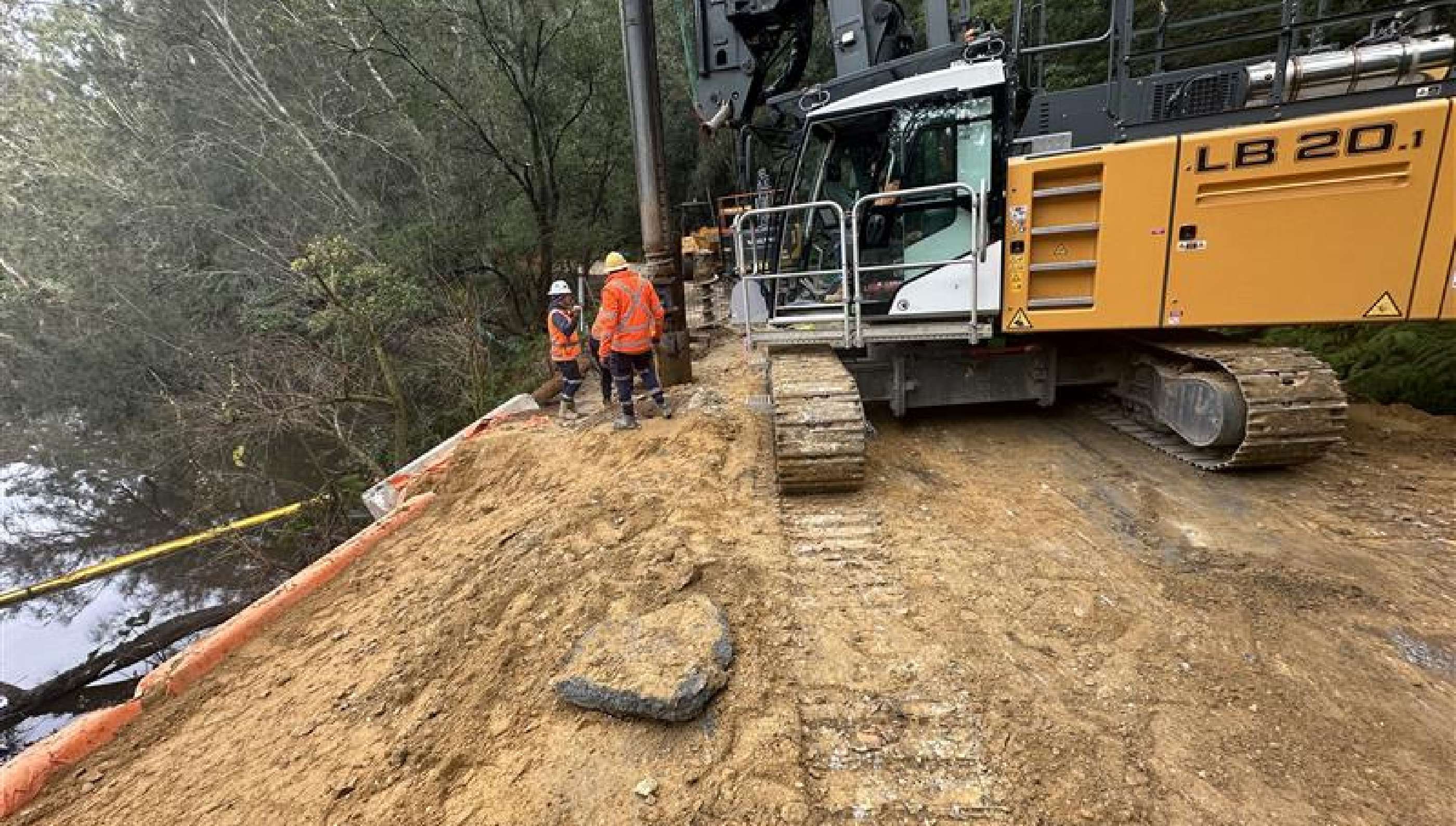 • Specialised sediment and erosion control deployed floating silt curtains in the river to contain sediment during works.