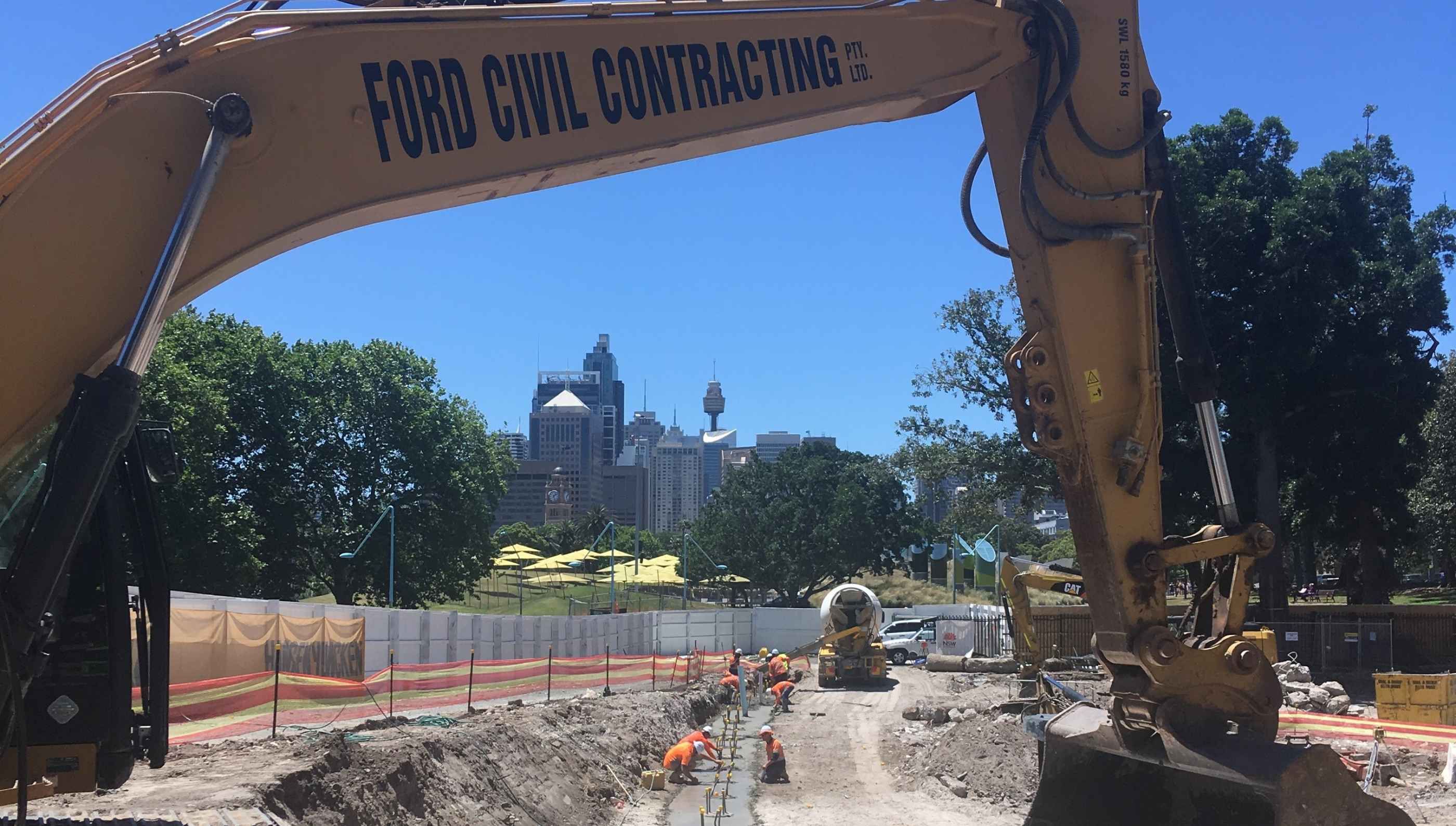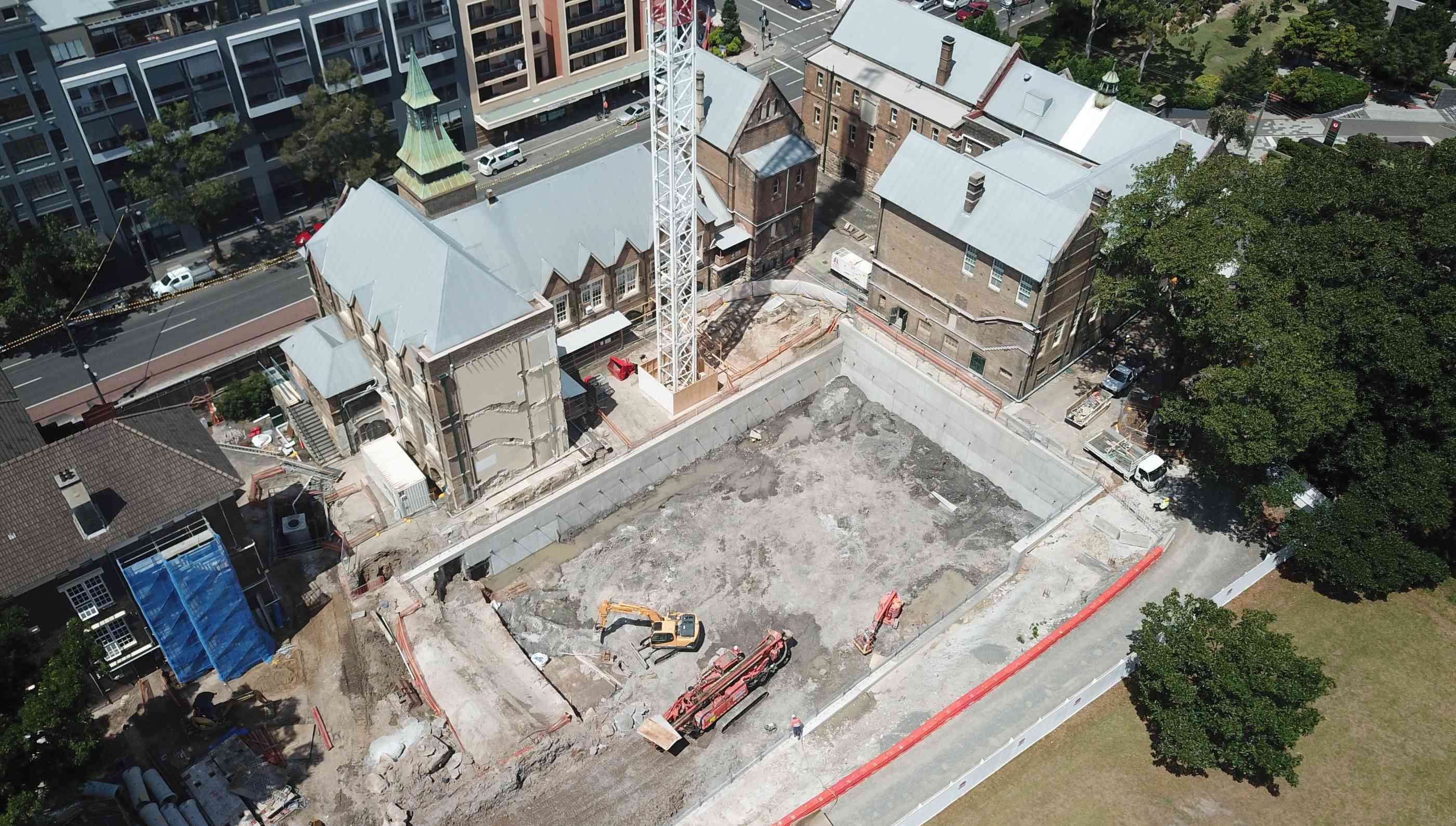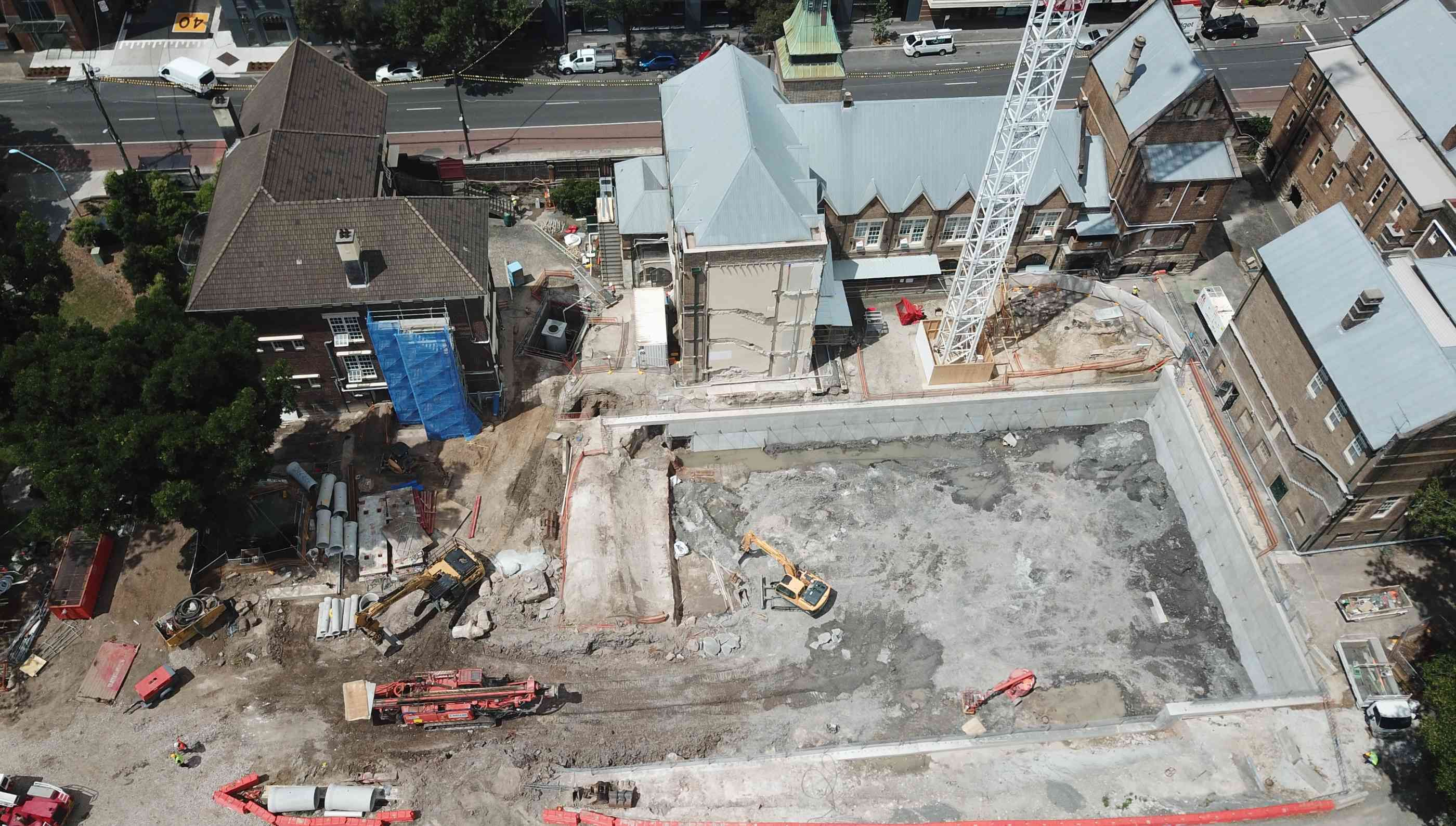 The works in Surry Hills for the Inner Sydney High School project involved the diversion of Sydney Water stormwater and sewer assets and the bulk excavation of a new 15 storey school building. As the existing sewer and stormwater ran through the excavation, a two-stage approach to the bulk excavation was adopted to allow the diversion works and bulk excavation to happen simultaneously. This also allowed the builder to progress with the part of the structure prior to the completion of the bulk excavation.